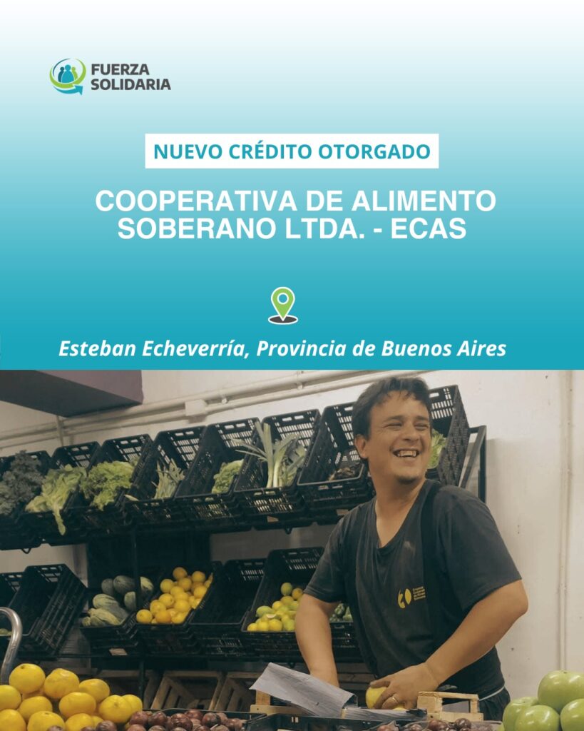 Realizamos un nuevo desembolso de crédito a la Cooperativa de Alimento Soberano – ECAS en nuestra sede de Fuerza Solidaria. El financiamiento, por un total de $60.000.000 permitirá el desarrollo de diez unidades productivas de invernadero y diez a cielo abierto en el cordón hortícola de La Plata, ampliando la producción agroecológica y consolidando nuevos circuitos comerciales para su marca cooperativa.